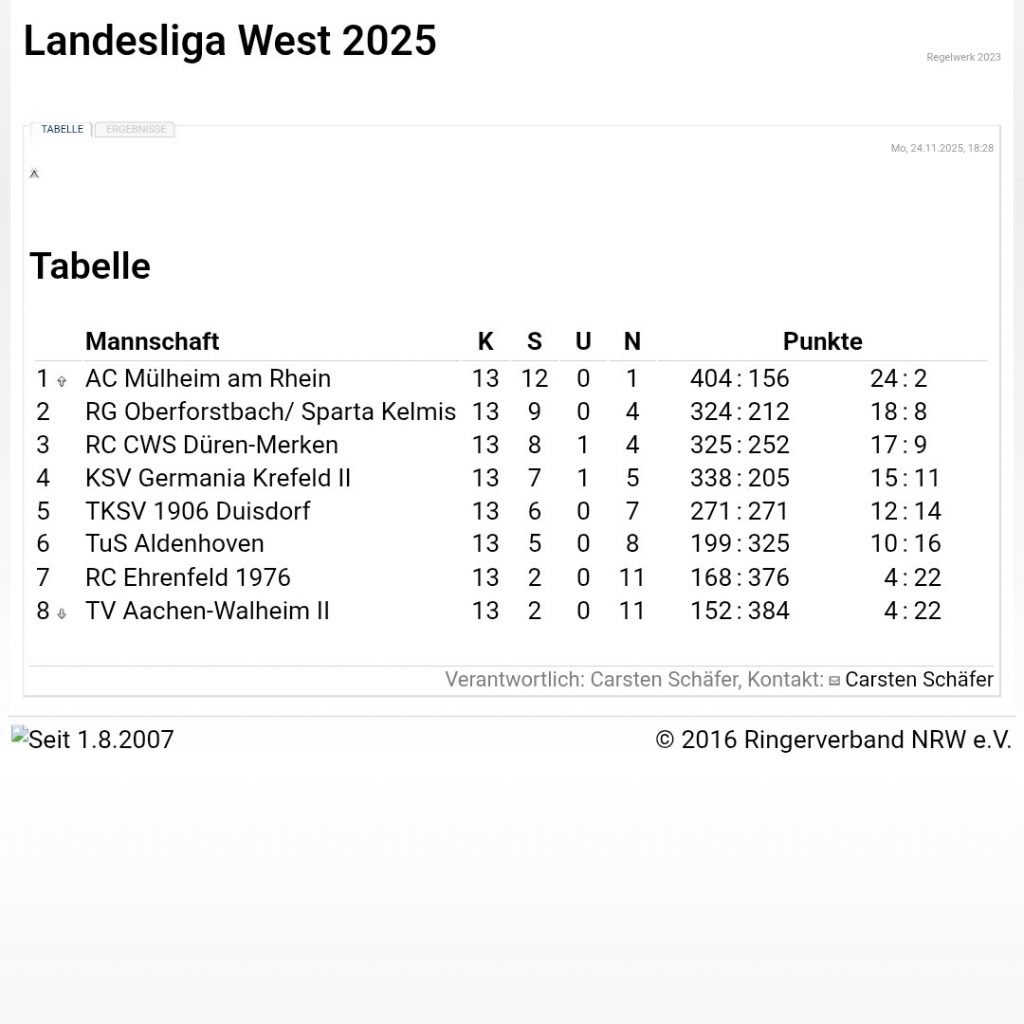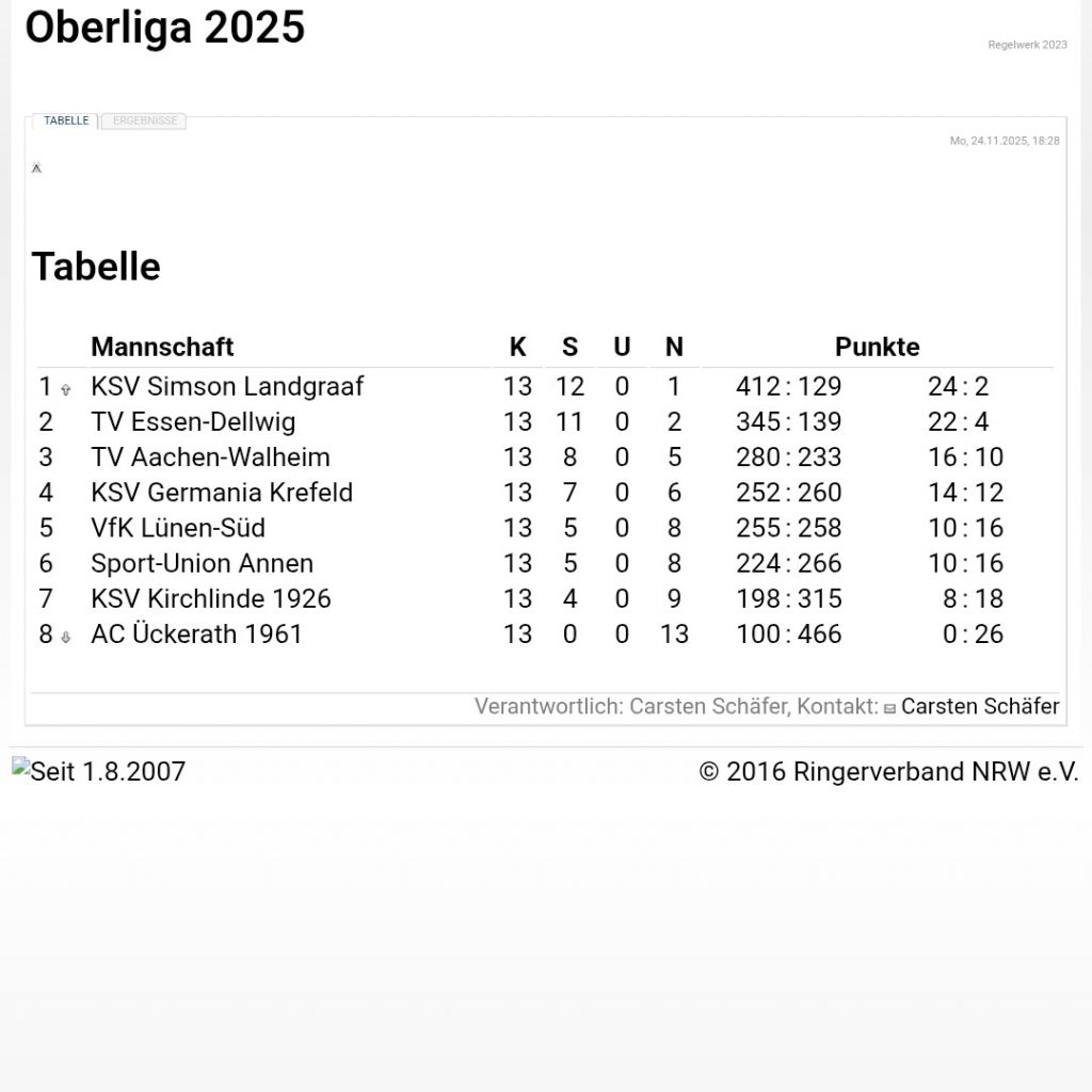 Damit neigt sich die Oberliga-Saison 2025 auch schon dem Ende entgegen. Nächste Woche geht es auswärts zu Sport-Union Annen ehe am Sonntag dem 30.11. der letzte Heimkampf gegen den KSV Kirchlinde ansteht.