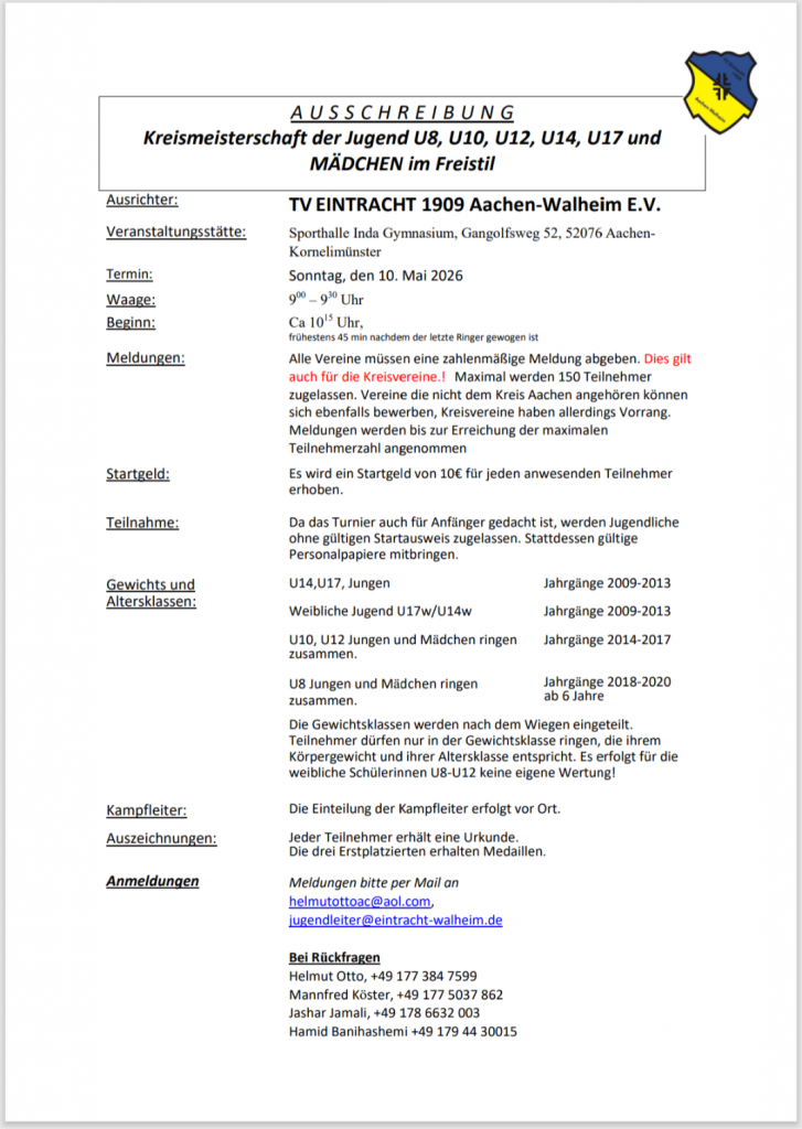 Auch Vereine außerhalb des Kreisverbands Aachen können teilnehmen, solange die maximale Teilnehmerzahl nicht überschritten wird. 🙌